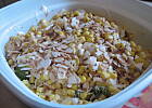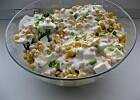 Robię podobną sałatkę, acz bez kukurydzy. W zamian daję pokrojone pomidorki cherry. I słonecznik prażony na suchej patelni- jest bardziej chrupki.
