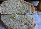 Zrobilam i ja ten chleb - zakwas czeka w zamrażalniku końca wakacji, a jeść coś trzeba (kupowanych po dwóch tygodniach mam dosyć). Jako, że drożdże suszone stanowią dla mniew do tej pory zagadkę - albo wyjdzie albo nie - najpier zrobiłam zaczyn z podanej w przepisie ilości drożdży, odrobiny wody i mąki - i jak zaczął rosnąć dopiero wtedy postępowałam dalej według przepisu. Chleb jest niewielki, ale za to bardzo smaczny, znika w szybkim tempie. Na pewno nie raz będę go robiła.
