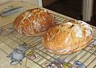 Basiu, wypiekasz je w foremce czy formujesz bochenki i wrzucasz na blache/kamien? jezeli ta druga opcja to ja bym proponowala uformowac jeden duzy bochenek i piec na raz, albo 2 (jezeli sa rzeczywiscie male) ale na 1 poziomie. Nigdy nie pieklam 2 na raz, bo moje chleby zwykle waza ok 1,5kg.. ;-)