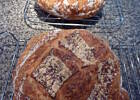 aga, to chyba robisz z co najmniej podwójnej porcji? Ja piekę w naczyniu żaroodpornym (tak jak jest w przepisie). A moje pytanie wynikło z tego, że ciasta dwa na raz już piekłam na 2 poziomach, ale nie wiem czy chleb tak samo się upiecze. Nie mam takiej dużej formy, chyba, że w zwykłej metalowej brytfannie (taka jak do mięsa). W oryginalnym przepisie jak widać pieką chleby właśnie w takich naczyniach, ale trochę się boję czy mi ciasto się nie przypali i nie przyklei się do dna naczynia. też myślałam jak by zrobić ciasto trochę twardsze, tak żeby szło uformować bochen, to może dało by się go po prostu położyć na zwykłą blachę (może się nie "rozjedzie"). aga9999, jeżeli możesz to napisz mi z jakiej ilości pieczesz, że masz 1,5 kg chleba, pozdrawiam Basia.