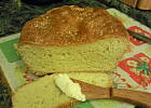 Chlebek inny niz te, które piekłam dotychczas. Bardzo dobry, delikatny o ładnym, żółtawym kolorze ciasta. Upiekłam go w owalnym szkle żaroodpornym. W czasie pieczenia posmarowałam wierzch masełkiem.