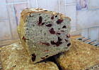 Teraz w wersji z żurawiną. Dobry, słodkawy. Zdecydowanie zmiejszyłam ilość dokładanego owocu. Według mnie 200g spokojnie wystarczy. I tak mialam niezły problem wmieszać owoc w ciasto. Dlatego tak nierównomiernie rozłożony.