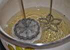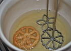 Wszystkie składniki bardzo dobrze zmiksować. Olej wlać do rondelka do wysokości rozetki. Tłuszcz rozgrzać (ale nie zagotować). Rozetke wsadzic do tłuszczu i również rozgrzać. Gorącą zamoczyć w cieście do wysokości 3/4 i trzymac tak długo aż skwierczy, następne zaurzyć w tłuszczu. Powinna sama po chwili odpaść (jeśli nie odpadnie pomóc sobie np. patyczkiem do szaszłyka). Piec na złoto, odsączyć na ręczniku papierowym nadmiar tłuszczu. Posypać cukrem pudrem :) Rozetka powinna być cały czas gorąca - nie odkładamy jej na bok. Jeśli w danym momencie jej nie używamy powinna być zamoczona w gorącym tłuszczu z piekącymi się rozetkami.