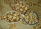 Ja też znowu robiłam pieguski - tym razem dodałam cukier puder zamiast zwykłego i wyszły bardziej miałkie. A dalej zrobiłm tak - podzieliłam ciasto na 3 części, do jednej dałam olejek cytrynowy i rodzynki, do drugiej czekolade gorzką i olejek waniliowy a do trzeciej orzechy włoskie i olejek migdałowy. Niestety znów zniknęły szybciej niz sie pojawiły ;)