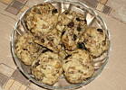 Tak wyglądał mój wypiek.. ogólnie dobre ciasteczka bardzo kruche.. zrobiłam z orzechami włoskimi, rodzynkami i czekoladą. Tylko trochę za tłuste jak dla mnie. Ale ogólnie i tak szybko znikły z blaszki :)