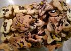 Podzielić je na kilka części. Do jednej wlać parę kropli olejku waniliowego albo migdałowego, do drugiej dodać łyżkę maku i olejek rumowy lub waniliowy, do trzeciej wsypać łyżkę kakao. Dobrze wyrobić, rozwałkować na grubość ok. 0,5 cm i foremką wycinać dowolne świąteczne kształty. Można też nakładać mniejsze kółeczko z kakao na większe kółko z białego ciasta.