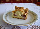 Ciasto smaczne, tylko chyba temperatura zbyt wysoka. Po 30 minutach pieczenia w 200 stopniach (więc i tak zmniejszyłam z 210) z jednej strony ciasto mi się mocno przypaliło a po otwarciu piekarnika buchnęło dymem:)) .A u Ciebie taki piękny jaśniutki. (zaznaczam że nie mam piekarnika z termoobiegiem).Może jednak ma być mniejsza temperatura? Na zdjęciu kawałek z tej strony mniej przypalonej:)