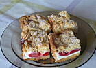 Układamy na niej umyte truskawki i pokrojony rabarbar.