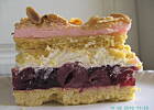Zostałam poczęstowana takim ciastem,warstwa krucha była trochę cieńsza,ale może było upieczone na większej blaszce.Warstwa owocowa była z porzeczkami ,w środku bitej śmietany,pianka-super krucha.Fajne ciastko,na pewno na kolejce do pieczenia.