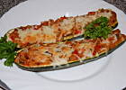 Łódeczki cukinii nadziać przygotowanym farszem i włożyć