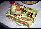 zrobiłam ten tort na swięta na urodziny synka ... był nim zachwycony. Wierzchu nie robiłam z kremówki, tylko z maślanych kremów. Nie wyszła mi tylko lufa, bo gapa ze mnie i zapomniałam kupić rurek i za lufę robił batonik twix