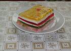 2 galaretki rozpuścić w 3 szklankach wrzącej wody . Następne 2 rozpuścić w takiej samej ilości wody. Ostatnią galaretkę rozpuścić w 1½ szklanki wrzącej wody.