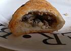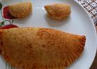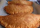 Wyrośnięte ciasto podzielić na dwie części i rozwałkować na placki o grubość około 3-5 milimetrów. Szklanką wykrawać kółka, na środku układać łyżeczkę nadzienia i sklejać podobnie jak pierogi. Przekładać na blaszkę wyłożoną papierem do pieczenia. Przed pieczeniem posmarować oliwą wymieszaną z papryką. Piec 12-15 minut w 210 stopniach Celsjusza. Są doskonałe na ciepło, ale również w temperaturze pokojowej smakują świetnie.