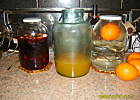 Na zdjęciu w sąsiedztwie " pomarańczowego wisielca" i nalewki owocowej.Najszybciej spróbuję likier dyniowy,bo pozostałe muszą odstać swoje:-)))