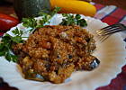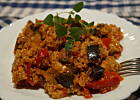 U mnie było bez bakłażana - bo jakby nie było miałam sporo cukinii. Doprawiona na ostro. Słodkawa cukinia rewelacyjnie uwydatniła orzechowy smak oliwy (duszę większość na oliwie, ze względu właśnie na ten zapach - ale zazwyczaj w smaku on ginie). Odlot w trakcie jedzenia
