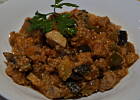 Troszkę zmieniłam- zamiast bakłażana- dwie papryki + pomidory w puszce + troszkę koncentratu. Doprawiłam na ostro- pieprz, chilli. No niebo w gębie! Najlepszy pewnie niekoniecznie (zje garmaż