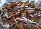 Z ciasta rozwałkowujemy bardzo cieniutkie placki,kroimy placek nożem lub radełkiem na paski dług. 9-10 cm i szaer. 3-4 cm.Każdy kawałek przecinamy na środku wzdłuż ok 2 cm. Smażymy w płaskim rondlu w tłuszczu rozgrzanym do 160-180 stopni. Jeśli kawałek ciasta wrzucony na tłuszcz natychmiast wypłynie temperatura tłuszczu jest dobra. Ostudzone i osączone z tłuszczu posypujemy cukrem pudrem wymieszanym z cukrem waniliowym. Smacznego!
