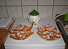 Całość zostawić do wyrośnięcia na ok. 1 godzinę. Następnie szybko zagnieść, wywałkować, podsypując mąką na grubość około centymetra i wycinać prostokąty. Pośrodku zrobić nacięcie. Przeciągnąć jeden koniec prostokąta przez powstałą dziurkę. Smażyć na niezbyt dużym ogniu na rozgrzanym głębokim oleju.
