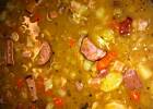 - Po okolo kwadransie od zagotowania boczku, dodajemy przepłukany na sicie groch.