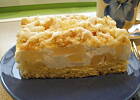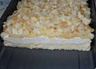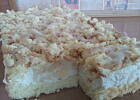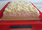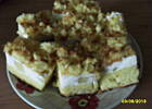 Cienki blat biszkopta pokruszyć i posypać ciasto.