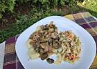Żołądki oczyścić, dokładnie umyć i obgotować. Pieczarki i cebulę oczyścić i pokroić razem z żołądkami w paseczki. Dodać wywar i razem z przyprawami dusić pod przykryciem. Podprawić zasmażką z mąki i smalcu i dodać śmietanę. Podawać z ziemniakami z wody lub ryżem ugotowanym na sypko.
