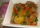Dolewamy wody, wrzucamy małe ziemniaczki i gotujemy na średnim ogniu. Tym razem już pod przykryciem. Pod koniec gotowania zwiększmy ogień i redukujemy sos do pożądanej ilości.