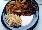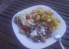 Gyrosik smakował nam wszystkim, dla mnie było może odrobinę za ostre, ale mąż stwierdził, że lepszego gyrosa w żadnej knajpie nie jadł. Podałam go z ziemniaczkami pieczonymi i surówką z kapusty pekińskiej.