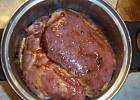 Wino podgrzać, dodać przyprawę, rodzynki, połączyć z namoczoną i rozpuszczoną żelatyną. Studzić do uzyskania konsystencji gęstego lakieru. Polewać plastry mięsa. Dekorować.