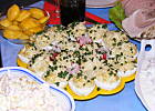 Wypełniamy nią białka jajek i układamy na półmisku na liściach sałaty.