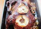 Moja kaczka ważyła prawie 3 kg, więc przypraw dużo więcej dodałam ( i dodatkowo tymianek), leżała sobie w przyprawach całą noc. Jabłka posypałam majerankiem, włożyłam je do wnętrza tuszki i całą kaczkę włożyłam do rękawa (nie zmieściła mi się do naczynia żaroodpornego