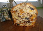 Upiekłam na Nowy rok i szybko zostało zjedzone. Pyszny, dałam rodzynki,figi,morele,żurawinę,suszonego anansa i trochę płatków migdałowych. Cudowny-wilgotny,najeżony bakaliami.