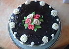 Krem wypróbowałam przy okazji imienin taty, rzeczywiście fantastycznie się z niego robi ozdoby, które po schłodzeniu idealnie zachowują kształt. Niestety jest zbyt maślany w smaku i choć dekoracja jest jadalna, pozostaje na talerzykach gości. Z tego przepisu wykonane są białe różyczki dookoła tortu, moje pierwsze w życiu róże z kremu.