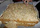Gotową masą krówkową posmarować wierzch ciasta i posypać posiekanymi orzechami włoskimi. Jeśli nie mamy gotowej masy krówkowej, wówczas możemy ją sami przygotować - 1 puszkę słodzonego mleka skondensowanego gotujemy na niewielkim ogniu przez 3 godziny, a następnie pozostawiamy do wystygnięcia.