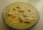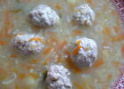 pieprzem i solą, oraz ¼ szklanki wody. Wyrobić masę, formować malutkie pulpeciki, wrzucać na gotujacą zupę, gotować około 10 - 12 min. Gdy zupa jest gotowa, doprawić solą, pieprzem, posypać koprem lub natką pietruszki.