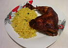 Bardzo smaczny kurczak.Upieklam go z ziemniakami i dodalam pieczarki.
