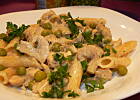 Co prawda u mnie zamiast wina jest sok cytrynowy i dołożonych zostało trochę pieczarek ...makaron też inny bo rurki ...