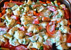 Dziękuję za przepis i cenne uwagi w komentarzach. Piekę (surowe): kalafior z kiełbasą opiekaną, cukinią, papryką czerwoną i pomidorami siekanymi w zalewie. Dopiekę bez przykrycia, polane sosikiem bazyliowo-czosnkowym. Pyszne, idealne letnie danie, polecam.