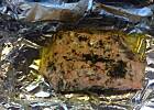 Po tym czasie kazdy filet oddzielnie zawijamy w folie, dodajac czesc zalewy. Zawijamy szczelnie folie i pieczemy lososia - w piekarniku w 200 st. C (375 st. F) ok. 20 minut.