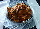 W międzyczasie można ugotować makaron. Dodać makaron do pozostałych składników. Przyprawić wedle uznania. Ja lubię na ostro. Dodać pomidory, chwilę razem podsmażyć: