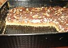 5. Wykończenie : na kruchy spód wylej gorącą masę karmelową, wyrównaj i zastudź. Możesz przed nałożeniem masy posypać ciasto rodzynkami (ja nie lubię). Na wystudzoną masę ostrożnie przełóż bezowy blat i leciutko dociśnij. Rozpuść czekoladę na parze, wlej do rożka z papieru i udekoruj wierzch mazurka nitkami czekolady.