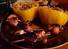 Odstawić na 3 godziny do lodówki. Gdy mięso się zamarynuje, każdy kawałek kuczaka zawinąć w boczek i piec na grillu (lub na ruszcie piekarnika ok. 15 minut w 180 stopniach). Mięso można również piec w formie szaszłyków.