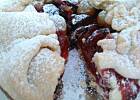 Ciasto wyjąć z lodówki na podsypany mąką blat, oprószyć je mąką, rozwałkować na cienki placek. Wykroić okręgi. Przełożyć na blachę wyłożoną papierem do pieczenia. Na środek ciasta położyć kupkę owoców; poskładać jego brzegi do środka bez zbytniej staranności zawijając zwracać uwagę na brak dziur w zagięciach, by sok z owoców nie wypłynął tak bardzo na zewnątrz. Można też