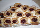 Aniula27, w przepisie jest wyraźnie napisane jaka ma być śmietana. Nigdzie nie ma słowa napisane, że ma być słodka kremówka (która nigdy nie jest gęsta). I do ciasta i do przełożenia używamy kwaśną, gęstą śmietanę. A to czy ona w kubeczku czy nie, to nie ma już znaczenia