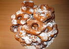 Myślałam, że jak poradziłam sobie ze smażeniem pączków to z oponkami mi pójdzie całkiem dobrze. A tu rozczarowanie.Wszyscy zadowoleni i chwalą przepis a u mnie na całej lini klapa... Nie wiem co zrobiłam nie tak jedynie mogę się domyslać. Mam wrażenie , że byłam zbyt niecierpliwa i smażyłam na niezbyt gorącym oleju.Gdy ciasto wkładałam na olej to ono zatapiało mi się, po pewnym momencie dopiero wypływało ale niezbyt dużo rosło. W rezultacie otrzymałam płaskie krążki, niezbyt wyrośnięte.