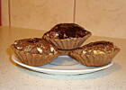 Mnie również przypominają babeczki z pewnego sklepu na literę " T ". Wyszło mi 21 sztuk. Kakao dałam 1,5 łyżki - jak dla mnie wystarczy. Ciasto trochę twarde, przez co daje efekt chrupiąco - czekalodowo - orzechowy.