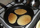 Smażymy placuszki dowolnej wielkości na suchej patelni teflonowej, na średnim ogniu (ciasto musi w czasie smażenia wyrosnąć). Przewracamy szeroką drewnianą łopatką.