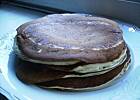 Zrobiłam sobie dzisiaj na obiadek z 1/4 porcji :P. Wyszły mi 3 przepyszne placuszki. Piekłam na zwykłej patelni, jednak dałam odrobinkę oleju, bo na sucho to się kopciło :P. Pancakesy bardzo dobre... wchodzą na stałe do "mojej" kuchni.