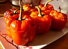 Ja zamiast zapiekac, nafaszerowane papryczki gotuje. Do duzego garnka nalewam ok 2-3 cm wody, do gotujacej sie wody dodaje bulion (np. knorra) i zamaczam w tym papryczki, gotuje dopoki skorka papryki nie zrobi sie al dente. Smacznego! :)