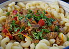 mięso z kurczaka pokroić bardzo , bardzo drobno pokroić i dołożyć do lekko podsmażonej cebuli i razem podsmażyć,a reszta bez zmian, tylko nie podlewać wodą bo wtedy musi być gęstszy. Nadziać, zapiec w piekarniku np. posypane serem żółtym, mozzarellą czy parmezanem - canneloni lub muszelki żeby się nie przepaliły i nie wyschły dobrze jest podlać szybkim sosem zrobionym z wody, przecieru pomidorowego i śmietanki i smacznego.