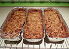 Dwie keksówki smaruję tłuszczem i obsypuję bułką tartą. Wypełniam pasztetem, mocno uderzam foremkami o blat i wstawiam do większej, głębokiej blaszki do której leję gorącą wodę do połowy wysokości foremek.
